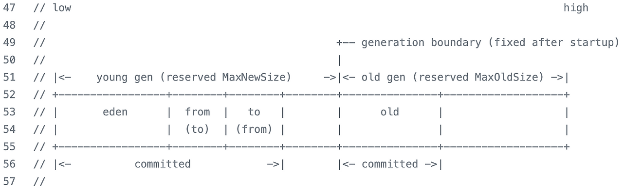 즉, 젊은 객체와 오래된 객체의 판정 알고리즘을 다르게 하는 것이 유리합니다. 이를 위해 세대(Generations)를 나눠 다른 영역에 저장합니다.
